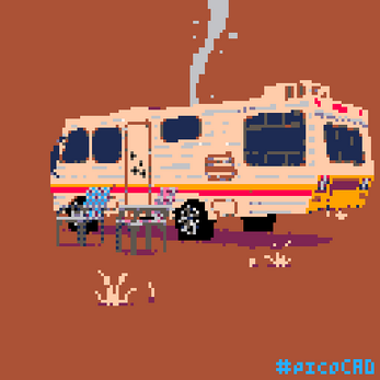 The Fleetwood Bounder motorhome from Breaking Bad. Don't think it's really that relaxing to go camping with Walter White and Jesse Pinkman. The model is made with PicoCAD and the textures with Aseprite.